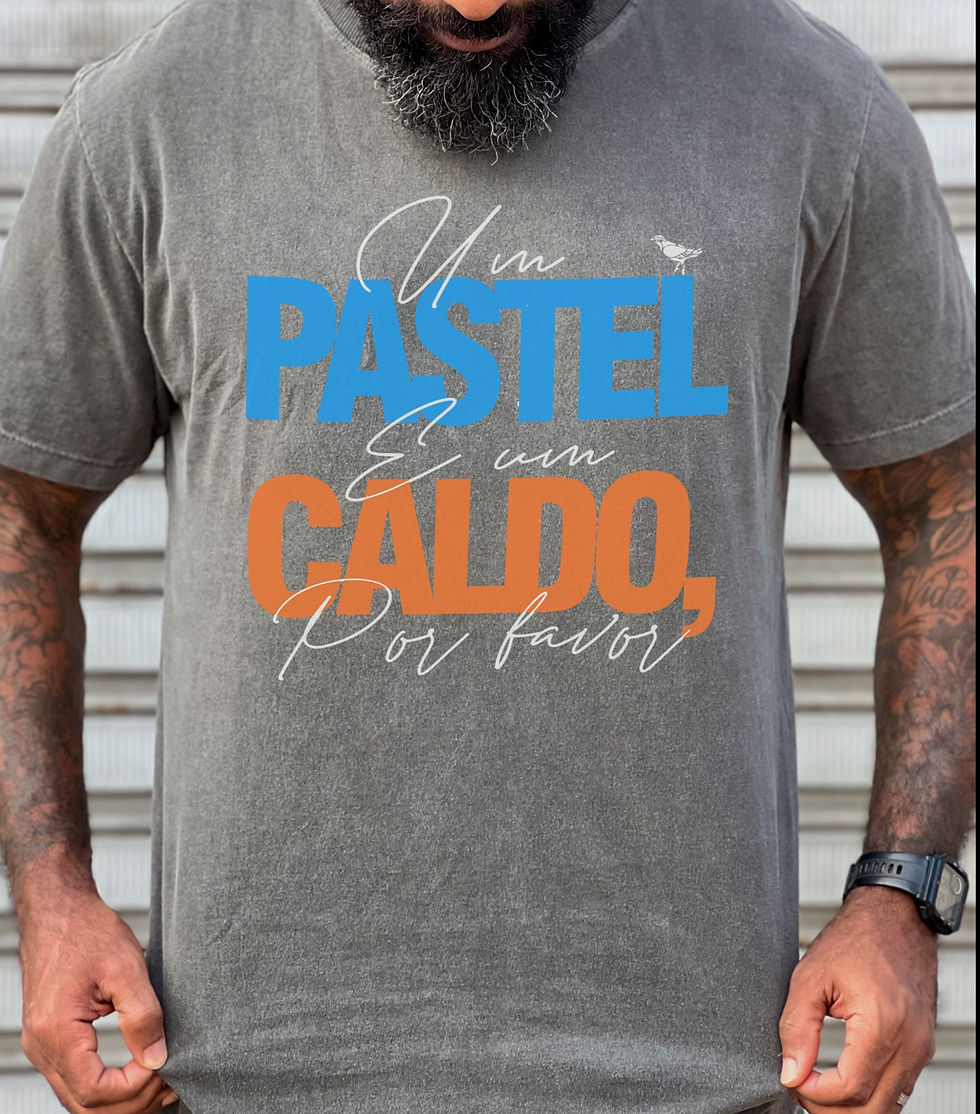 CAMISETA UM PASTEL E UM CALDO STONE CHUMBO